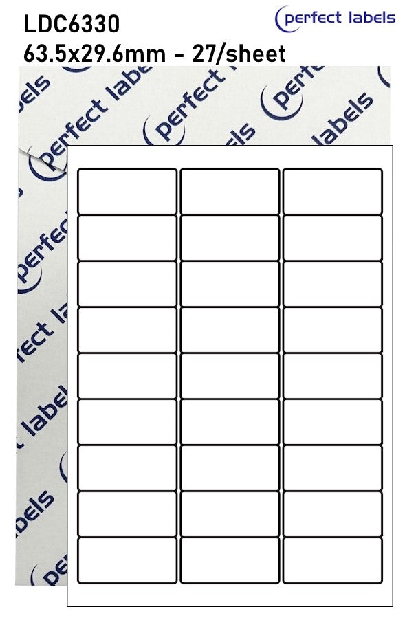 LDC6330 Semi-Gloss Permanent Perfect Labels | 63.5x29.6mm Rectangles 27 Labels Per Sheet - A4 100 or 500 Sheets/Box