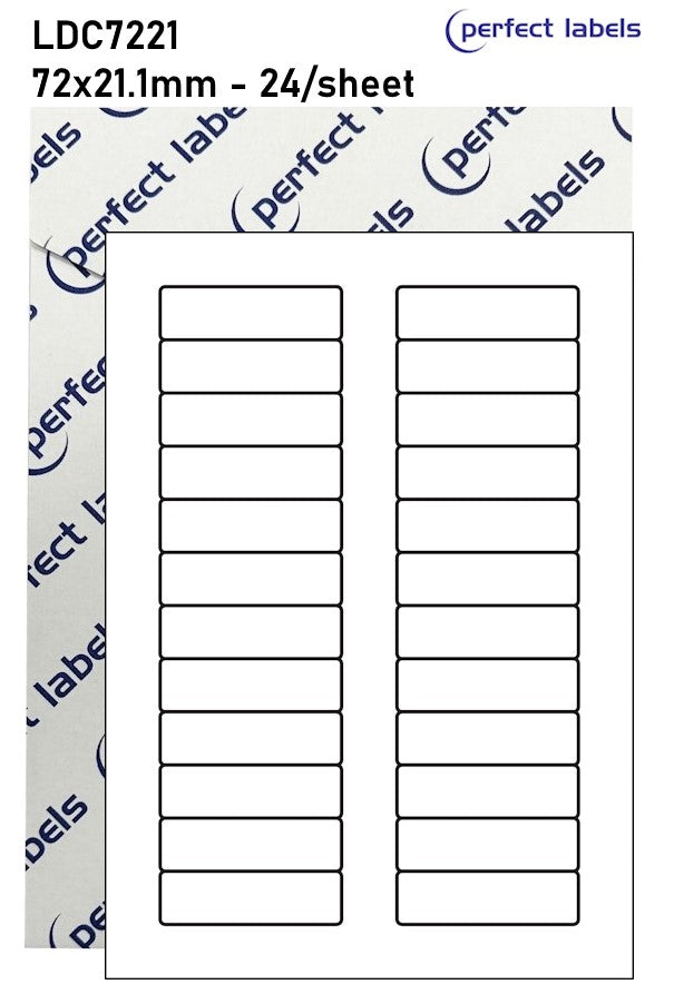LDC7221 Semi-Gloss Permanent Perfect Labels | 72x21.1mm Rectangles 24 Labels Per Sheet - A4 100 or 500 Sheets/Box